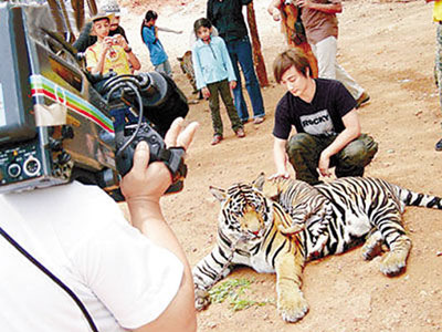 方力申日前到泰國老虎寺拍攝《向世界出發(fā)》第三輯,與張牙舞爪的大老虎并肩而行,他給老虎洗澡、喂奶。為安全起見,事前他已買高額保險并打破傷風(fēng)針,以防萬一。