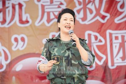 昨日的演出共分成兩個分隊:彭麗媛、閻維文、黃宏、蔡國慶、吳娜、白雪、夢鴿、王慶爽、索朗旺姆、雷佳等為第一分隊,上午在綿竹遵道鎮(zhèn)棚花村演出,下午到劍南鎮(zhèn)烏蒙鐵軍營地演出。而第二分隊,則由戴玉強、譚晶、王宏偉、王麗達、劉勁等明星組成,上午在廣元地震災區(qū)馬鹿鄉(xiāng)演出,下午在喬莊演出。