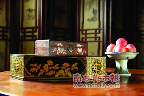 豪華臥榻:當天拍攝的主要是賈母病重的一場戲,賈母的臥室成為主要場景。記者見到的這張超豪華臥榻,長8米,寬2.5米,床上不僅古董滿滿,連臥榻上的靠枕、被子,都精心搭配過色調(diào),“以配合賈母的身份”。