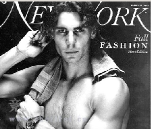 奧運(yùn)會網(wǎng)球男子單打新科冠軍納達(dá)爾成為時尚界的新寵。他赤裸上身大展肌肉,成為即將于本月25日出版的美國時尚雜志《紐約》雜志男女雙刊男子部分的封面人物,與他對應(yīng)的女子部分的封面人物則是前名模克里斯蒂·布林克利。