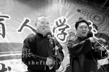 從窗戶望出去,能看到山,這種景致讓許多身處都市的人心動(dòng)。但是,窗子邊的孩子們卻看不到這種景致,他們是北京市盲人學(xué)校的盲童。昨日,這些看不到美麗風(fēng)景的盲人孩子卻聽到了令人捧腹的相聲——郭德綱和搭檔于謙、師弟高峰等人帶來一場快意的演出。