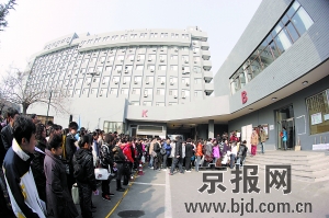 今年北電表演系初試一共8個(gè)考場(chǎng),每個(gè)考場(chǎng)三名考官,其中不乏徐靜蕾、黃磊這樣的明星考官。考生們25個(gè)人一批進(jìn)入一個(gè)考場(chǎng),之后分兩組坐定,首先進(jìn)行自我介紹,并準(zhǔn)備一段3分鐘內(nèi)的朗誦材料,可以是詩歌、散文、小說或電影、戲劇里的一段獨(dú)白。隨后,老師給出一個(gè)集體小品題目,第一組考生出去準(zhǔn)備。第二組再重復(fù)進(jìn)行。