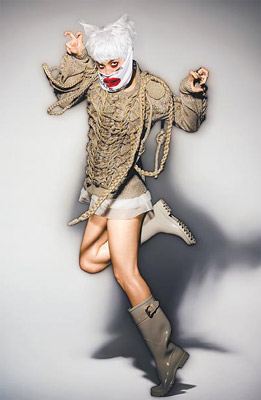 中新網(wǎng)2月24日電 Ella一直是S.H.E這3個(gè)女孩里最古靈精怪的,她在接受造型師陳孫華《孫華的想相》一書拍照時(shí),幻化成白發(fā)、紅眼圈的個(gè)性貓女,特別的是她在BURBERRY的男性毛衣下,只套了白色罩衫和內(nèi)褲,連安全褲都沒穿,意外呈現(xiàn)個(gè)性化的性感。