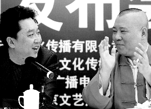 只要有郭德綱在的發(fā)布會(huì),記者們都不愁沒(méi)內(nèi)容寫,因?yàn)楣戮V會(huì)把說(shuō)相聲的技能也帶到會(huì)上來(lái),于是每次記者招待會(huì)就變成“逗樂(lè)會(huì)”,無(wú)論媒體拋出什么樣的問(wèn)題,郭德綱都會(huì)妙語(yǔ)連珠給予回應(yīng)。