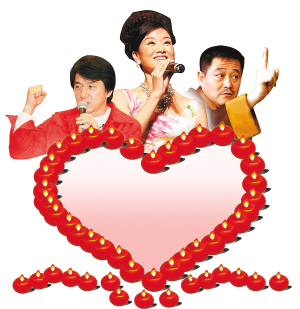 在“5·12”大地震一周年即將到來之際,5月10日上午,中央電視臺“心連心”藝術(shù)團(tuán)將在四川綿竹舉行主題為“三百六十五個祝!钡拇笮臀繂栄莩觥D壳,已經(jīng)有成龍、趙本山、宋祖英等近百位明星踴躍報名,表示將免費參演。