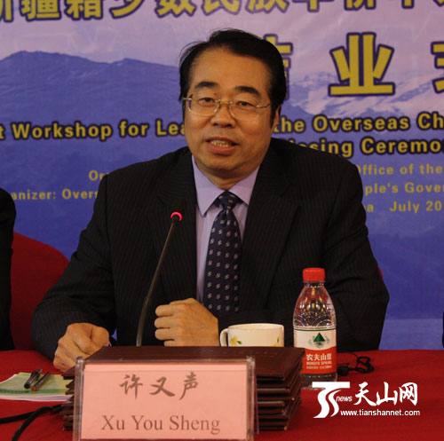 7月24日上午,首期新疆籍少數(shù)民族華僑華人社團(tuán)負(fù)責(zé)人研習(xí)班結(jié)業(yè)式在烏魯木齊舉行。國(guó)僑辦副主任許又聲出席結(jié)業(yè)式并講話。自治區(qū)副主席胡偉出席結(jié)業(yè)式并致辭。