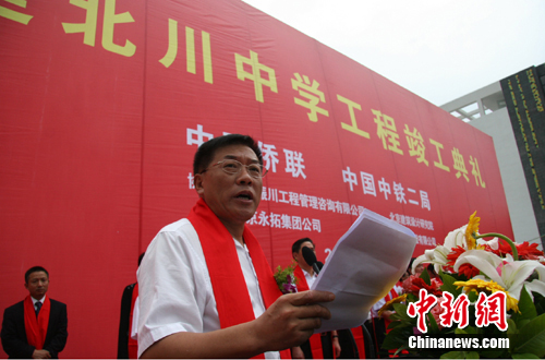 中國僑聯(lián)主席林軍今天在竣工典禮上說,中國僑聯(lián)和各援建單位沒有辜負全國人民的厚望,沒有辜負廣大歸僑僑眷、海外僑胞、港澳臺同胞的重托。今天,我們將質量一流、安全堅固、環(huán)境優(yōu)美、和諧溫馨的新北川中學呈獻給北川人民,希望即將在這里開始新的學習生活的北川中學師生們振奮精神、早日成才。