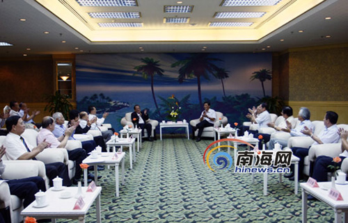 8月19日下午,海南省委副書記于迅在?跁娏嘶丨偝鱿D虾M饴(lián)誼會四屆理事大會的港澳臺海外代表人士。