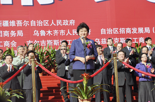 開幕式上中共中央政治局委員,國務委員劉延東宣布,烏洽會將從明年開始升格為中國亞歐博覽會,并且宣布本屆烏洽會開幕。