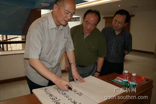 中新網(wǎng)9月25日電 據(jù)廣東僑網(wǎng)消息,9月23日中午,國(guó)務(wù)院僑辦副主任趙陽(yáng)在廣東省僑辦主任吳銳成、副主任鄭建民陪同下視察廣東華僑博物館,并為廣東華僑博物館題詞。