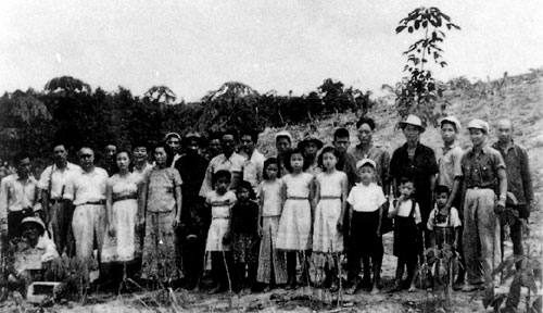 這張攝于1956年的照片,地點(diǎn)位于南田農(nóng)場(chǎng)愛國(guó)作業(yè)區(qū)的橡膠林前。