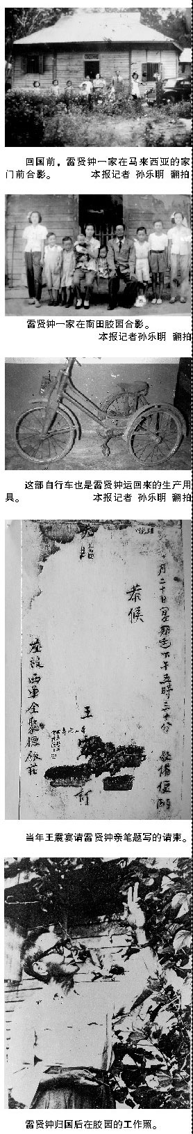 一位普通的愛國(guó)華僑,何以驚動(dòng)全國(guó)僑聯(lián)不辭辛苦,來到天涯海角的一處膠園?而當(dāng)年4月,照片中的男主角雷賢鐘,不僅受邀去北京參加全國(guó)歸國(guó)華僑聯(lián)合會(huì)成立大會(huì),還得到周總理的專門接見、農(nóng)墾部長(zhǎng)王震的專門宴請(qǐng)。