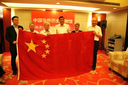 陳錦堂團(tuán)長(zhǎng)代表衣聯(lián)會(huì)感謝說(shuō),十分高興能將這面如此有價(jià)值的國(guó)旗帶回國(guó)內(nèi),捐贈(zèng)給中國(guó)華僑歷史博物館,當(dāng)年我們衣聯(lián)會(huì)代表旅美愛(ài)國(guó)華僑升起國(guó)旗,雖飽受磨難,但時(shí)至今日,我們?nèi)愿械绞肿院馈?/p>