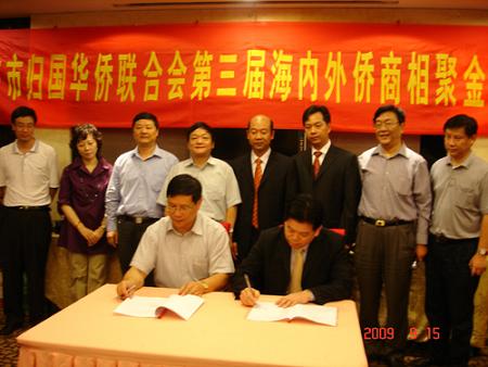 今年以來(lái),南京市僑聯(lián)緊緊圍繞市委、市政府“保增長(zhǎng)、促發(fā)展,保穩(wěn)定、促和諧”的工作重點(diǎn),積極發(fā)揮海外顧問(wèn)與僑界經(jīng)濟(jì)界聯(lián)系密切的優(yōu)勢(shì),開(kāi)展對(duì)外招商引資工作。新西蘭江蘇(南京)同鄉(xiāng)會(huì)副會(huì)長(zhǎng)郜曉鳴擬在南京投資開(kāi)發(fā)金融軟件項(xiàng)目,注冊(cè)資金1000萬(wàn)元,南京市僑聯(lián)積極幫助牽線,使該項(xiàng)目成功落地南京;南京市僑聯(lián)海外顧問(wèn)、中泰集團(tuán)董事局主席劉學(xué)忠想把國(guó)外風(fēng)力發(fā)電配套基地項(xiàng)目引進(jìn)南京,在5月23日南京市“重洽會(huì)”上,中泰集團(tuán)與南京溧水經(jīng)濟(jì)開(kāi)發(fā)區(qū)簽約協(xié)議,該項(xiàng)目一期注冊(cè)資金1000萬(wàn)美金,預(yù)計(jì)總投資1億美元,占地500畝,目前該項(xiàng)目在有序進(jìn)展中。