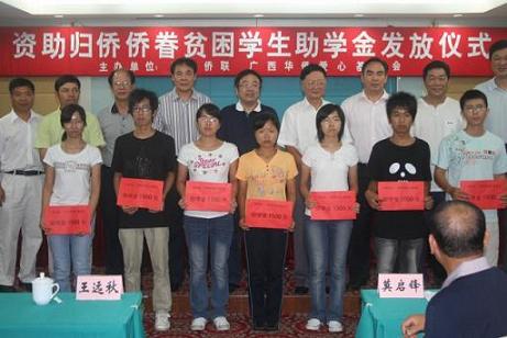 中新網(wǎng)9月21日電 9月15日,廣西僑聯(lián)、廣西華僑愛心基金會(huì)舉行資助歸僑僑眷貧困學(xué)生助學(xué)金發(fā)放儀式,廣西自治區(qū)歸僑僑眷貧困大學(xué)生、高中生214名獲得資助,助學(xué)金總金額30.1萬元。這是廣西自治區(qū)僑聯(lián)連續(xù)資助全區(qū)歸僑僑眷貧困生的第三年,也是廣西華僑愛心基金會(huì)資助全廣西自治區(qū)歸僑僑眷貧困生的第一年。