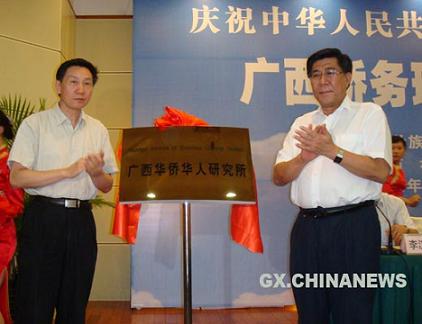 廣西僑務(wù)理論研究的重要基地——廣西華僑華人研究所9月24日在南寧掛牌成立,廣西壯族自治區(qū)政協(xié)副主席梁春祿、國務(wù)院僑辦政策法規(guī)司副司長范如松為研究所揭牌,廣西壯族自治區(qū)僑辦主任李漢金、廣西社會科學(xué)院院長呂余生等出席活動。此為廣西自治區(qū)僑辦充分利用廣西社科院東南亞研究所的資源和力量,發(fā)展廣西的僑務(wù)理論尤其是對華僑華人研究工作的重要舉措。