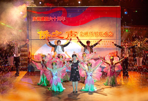 中新網(wǎng)9月29日電 明月迎中秋,團(tuán)圓慶國慶。9月27日,寧波余姚市僑務(wù)系統(tǒng)首次舉行了具有“僑”之特色的文娛活動(dòng)——“僑之聲”余姚市僑界慶祝新中國成立60周年聯(lián)歡會(huì)。市政協(xié)副主席、市委統(tǒng)戰(zhàn)部部長葉文龍,市僑辦主任、僑聯(lián)主席黃孟丹等領(lǐng)導(dǎo)出席,全市僑界政協(xié)委員、僑聯(lián)委員以及部分歸僑僑眷、留學(xué)人員及其家屬、僑資僑屬企業(yè)家、基層僑務(wù)工作者,共計(jì)400余人共同歡度了節(jié)日的聚會(huì)。