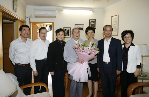 上海市委統(tǒng)戰(zhàn)部副部長(zhǎng)丁志堅(jiān)、市慈善基金會(huì)副理事長(zhǎng)兼秘書(shū)長(zhǎng)金閔珠、市僑聯(lián)副主席張癸和市僑辦副主任陳文佳看望了菲律賓歸僑、中科院上海植物生理生態(tài)研究所研究員施教耐院士和美國(guó)歸僑、中科院上海有機(jī)化學(xué)研究所研究員蔣錫夔院士,感謝他們?cè)诟髯缘目蒲蓄I(lǐng)域?yàn)樯鐣?huì)做出的杰出貢獻(xiàn),是僑界的驕傲。