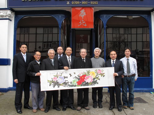 訪問團抵達倫敦時,英國京菜同業(yè)協(xié)會(山東省同鄉(xiāng)聯(lián)誼會)副會長王文興到機場迎接。訪問團看望了山東籍老僑領(lǐng),與京菜同業(yè)協(xié)會(山東省同鄉(xiāng)聯(lián)誼會)進行了座談,并向協(xié)會贈送了紀念品。(山東省僑辦)