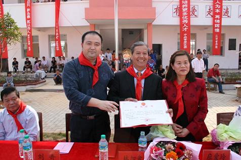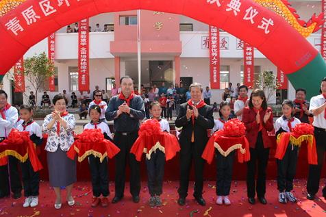 中新網(wǎng)11月4日電 據(jù)江西僑聯(lián)網(wǎng)站消息,2009年10月31日上午,江西省吉安市青原區(qū)富田鎮(zhèn)坪田小學(xué)鑼鼓陣陣,鞭炮長鳴,五顏六色的彩旗迎風(fēng)飄揚,同學(xué)們穿上了節(jié)日的盛裝,戴上鮮艷的紅領(lǐng)巾,臉上露出了燦爛的笑容,雙手興高采烈地?fù)]舞著美麗的鮮花,熱烈慶!凹訍蹆S心小學(xué)”的落成。