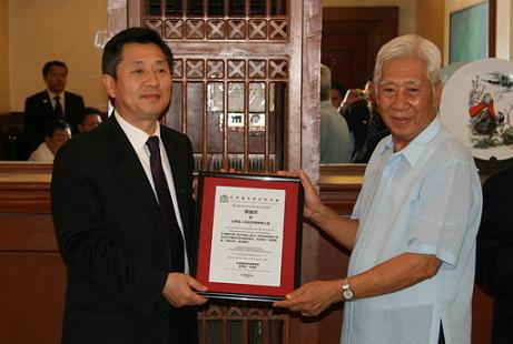 中新網(wǎng)11月25日電 據(jù)山東省僑辦消息, 11月23日,山東省僑務(wù)訪問團拜訪了中國駐菲律賓宿務(wù)領(lǐng)事館,與總領(lǐng)事何時敬舉行了座談,并向領(lǐng)事館贈送了紀(jì)念品。隨后訪問團前去拜會了宿務(wù)菲華商會,該會理事長林倫超及各位理事熱情接待了訪問團一行。