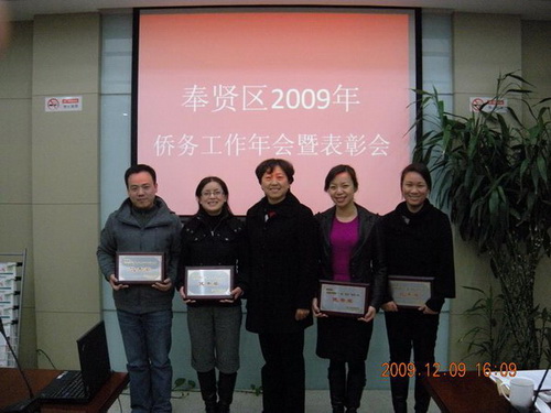 中新網(wǎng)12月11日電 據(jù)上海市僑辦消息,12月9日,上海市奉賢區(qū)僑務(wù)部門召開2009年僑務(wù)工作年會暨表彰會,全區(qū)八個(gè)鎮(zhèn)、五個(gè)開發(fā)區(qū)及有關(guān)委、辦、局全體僑務(wù)干部參加了會議。