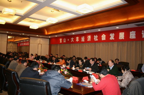 隨后,考察團(tuán)一行與大豐市委、市政府進(jìn)行了“寶山、大豐經(jīng)濟(jì)社會發(fā)展座談會”。大豐市委書記倪峰等出席活動并向考察團(tuán)介紹了大豐市、大豐工業(yè)園區(qū)、經(jīng)濟(jì)開發(fā)區(qū)及大豐港的情況,誠摯邀請寶山臺資、僑資企業(yè)家到大豐創(chuàng)業(yè)發(fā)展。