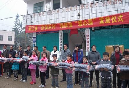 出席揭牌儀式的領(lǐng)導(dǎo)還向明倫鎮(zhèn)八面、八合小學(xué)及環(huán)江縣特教學(xué)校400多名師生發(fā)放了胡家儀先生及其公司捐贈(zèng)的御寒羽絨服。(莫棉荷)