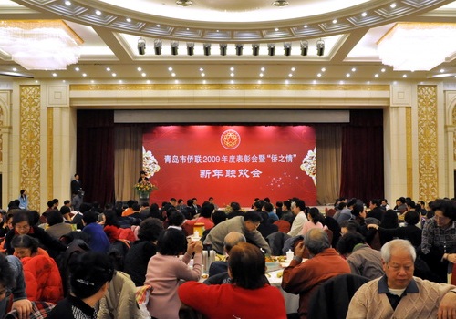 中新網(wǎng)1月20日電 據(jù)青島市僑聯(lián)消息,1月16日下午,山東省青島市僑聯(lián)在黃海飯店隆重舉辦了2009年度表彰會(huì)暨“僑之情”新年聯(lián)歡會(huì)。來(lái)自青島市各條戰(zhàn)線(xiàn)的400余名歸僑僑眷代表、駐青海外僑胞和僑聯(lián)工作者歡聚一堂,表彰先進(jìn),暢敘友情,喜迎新春。