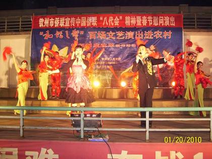 欽州市粵劇團(tuán)共演出舞蹈、小品、獨(dú)唱等20多個節(jié)目,內(nèi)容豐富多彩,謳歌了欽州改革開放成就,有鮮明地方特色。觀看群眾達(dá)到3000多人。