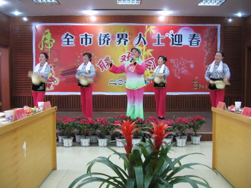 聯(lián)歡會上,歸僑僑眷和僑務(wù)干部們自編自演,用歌曲、舞蹈等多種形式表達(dá)新春來臨的喜悅心情。