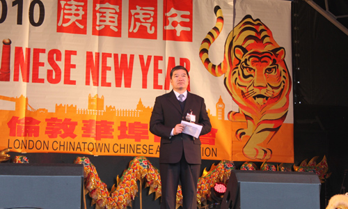 演出前,任啟亮代表中國(guó)國(guó)務(wù)院僑辦和“文化中國(guó)•四海同春”藝術(shù)團(tuán)全體成員,向英國(guó)華僑華人以及在場(chǎng)的英國(guó)朋友致以節(jié)日的問(wèn)候和最美好的祝愿。他說(shuō),為豐富僑胞文化生活,促進(jìn)中英文化交流,繼去年組派“文化中國(guó)•四海同春”藝術(shù)團(tuán)來(lái)英表演后,今年又為大家?guī)?lái)了一場(chǎng)民族特色濃郁的歌舞表演,相信這將為英國(guó)僑社的春節(jié)慶;顒(dòng)增添亮麗色彩,加深英國(guó)民眾對(duì)中華文化的了解,增進(jìn)中英兩國(guó)人民的友誼。