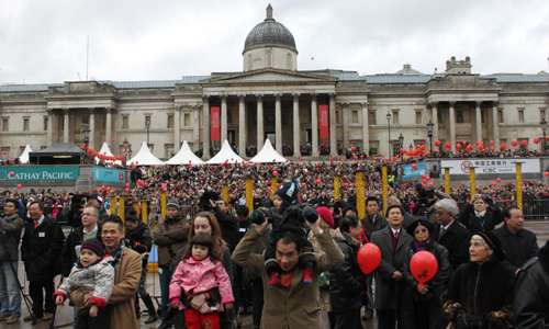 中新網(wǎng)2月22日電 2月21日中午,近三十萬(wàn)英國(guó)華僑華人及當(dāng)?shù)孛癖妳R集在倫敦特拉法加廣場(chǎng),共同觀(guān)賞了由中國(guó)國(guó)務(wù)院僑辦副主任任啟亮率領(lǐng)的“文化中國(guó)•四海同春”藝術(shù)團(tuán)的精彩演出。中央民族歌舞團(tuán)極具民族特色的歌舞和著名歌唱家劉斌、呂薇、桐瑤的傾情表演深深地打動(dòng)了數(shù)以十萬(wàn)計(jì)的觀(guān)眾,使廣大旅英僑胞在春寒料峭中感受到了來(lái)自祖(籍)國(guó)的溫暖,也使在場(chǎng)的外國(guó)朋友領(lǐng)略到中華文化的魅力。