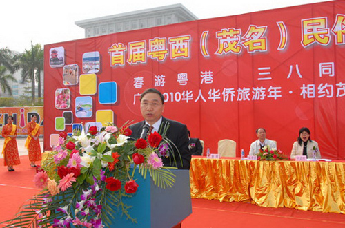 林琳在啟動儀式上作了講話。他首先代表廣東省僑辦向茂名全市人民表示熱烈的祝賀,并預祝首屆粵西(茂名)民俗風情旅游節(jié)取得圓滿成功!他指出,茂名市在首屆粵西民俗風情旅游節(jié)中同時舉辦“廣東2010年華人華僑旅游年·相約茂名”活動,既體現(xiàn)了這次旅游節(jié)的僑鄉(xiāng)特色,更體現(xiàn)了茂名市各級黨委政府對僑務工作的重視,對為僑服務和以僑為橋搞活經(jīng)濟、搞活旅游所作出的巨大努力,認為此舉必將為溝通海內(nèi)外茂名鄉(xiāng)親的聯(lián)系、發(fā)掘茂名旅游資源、進一步拓展和繁榮茂名的旅游市場發(fā)揮出積極的作用。