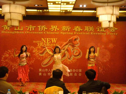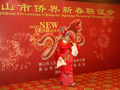 黃山市副市長徐健敏代表市政府對2009年全市外事僑務系統(tǒng)先進單位進行了表彰。各區(qū)縣僑務干部及僑眷代表們表演了豐富多彩的文藝節(jié)目,將晚會推向高潮,營造了濃厚的節(jié)日氛圍。