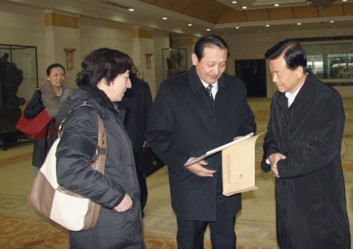 抵達濟南時,山東省僑辦副主任史進、濟南天橋區(qū)區(qū)長王建軍、濟南市僑辦副主任蘇峰到機場迎接。在機場貴賓廳史進與許榮茂進行了親切交談,并向其發(fā)出邀請,希望他撥冗出席2010年9月國務(wù)院僑辦和山東省政府在濟南聯(lián)合舉辦的“第五屆華商企業(yè)科技創(chuàng)新合作交流會”,并作為主講嘉賓在大會論壇發(fā)表演講。史進將邀請函鄭重交給許榮茂,許榮茂欣然接受了參會邀請。