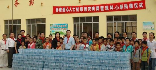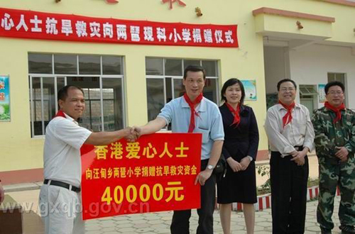近段時(shí)間,廣西百色市右江區(qū)旺甸瑤族鄉(xiāng)兩琶村小學(xué)遭遇特大旱災(zāi),學(xué)校蓄水池?cái)嗨嗳,引起了社?huì)各界的廣泛關(guān)注,也牽動(dòng)了廣西壯族自治區(qū)、百色市、右江區(qū)僑辦領(lǐng)導(dǎo)的心。經(jīng)廣西僑辦搭橋牽線,香港謝家忠、葉林慧儀、原秋明等愛(ài)心人士,心系瑤寨小學(xué)生,千里奔瑤鄉(xiāng),將一縷縷清澈的泉水運(yùn)送到了旺甸瑤族鄉(xiāng)兩琶村小學(xué)。