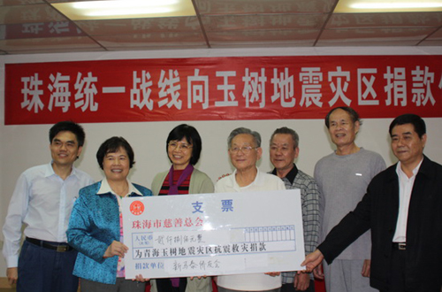 中新網(wǎng)4月22日電 據(jù)珠海外僑局消息,4月20日下午,廣東省珠海市委統(tǒng)戰(zhàn)部在三樓大廳舉行為青海玉樹(shù)地震災(zāi)區(qū)捐款儀式,珠海市新馬泰的僑友在副會(huì)長(zhǎng)車(chē)玉屏、張舉安的帶領(lǐng)下共捐款2800元,為青海玉樹(shù)地震災(zāi)區(qū)獻(xiàn)上珠海特區(qū)僑友的一片愛(ài)心。