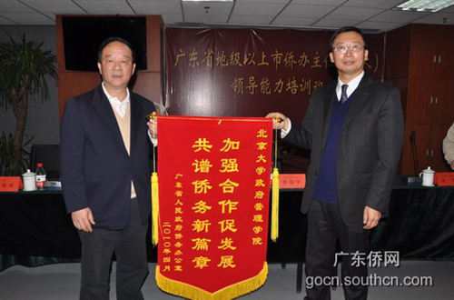 中新網(wǎng)4月23日電 據(jù)廣東僑網(wǎng)消息,4月22日上午,廣東省地級以上市僑辦主任(局長)領(lǐng)導(dǎo)能力培訓(xùn)班舉行結(jié)業(yè)典禮。原全國政協(xié)副主席、北京大學(xué)政府管理學(xué)院院長羅豪才出席了結(jié)業(yè)典禮并與全體學(xué)員合影留念。