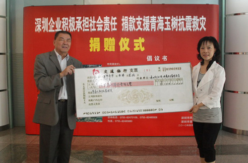 你1000,我10000……沒有組織捐款儀式,也沒有發(fā)起捐款倡議,市僑企聯(lián)的會員企業(yè)家們的捐款如雪片般匯聚。184100元這個有零有整的數(shù)字中,凝聚著深圳僑企對青海玉樹災(zāi)區(qū)人民的一片愛心,也讓人們再一次深刻體會到了中華民族一方有難、八方支援的民族精神,再一次感受到廣大歸僑僑眷熱愛祖國,守望相助,血濃于水的骨肉深情。一位目前還處在艱難創(chuàng)業(yè)階段的歸國留學生說道,雖然他并不富裕,但仍希望以綿薄之力,給災(zāi)區(qū)同胞一份關(guān)愛。