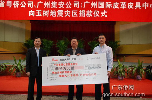 中新網(wǎng)4月26日電 據(jù)廣東僑網(wǎng)消息,4月14日,青海省玉樹縣發(fā)生7.1級(jí)地震,災(zāi)區(qū)人民群眾遭受重大傷亡和財(cái)產(chǎn)損失!災(zāi)情牽動(dòng)著剛剛結(jié)為戰(zhàn)略合作伙伴的廣東省粵僑企業(yè)總公司和廣州集安投資有限公司上下的心。懷著強(qiáng)烈的社會(huì)責(zé)任感和對(duì)災(zāi)區(qū)人民的無比深情,兩公司決定通過廣東省僑心慈善基金會(huì)向玉樹災(zāi)區(qū)捐款30萬元人民幣,支持災(zāi)區(qū)抗震救災(zāi)。