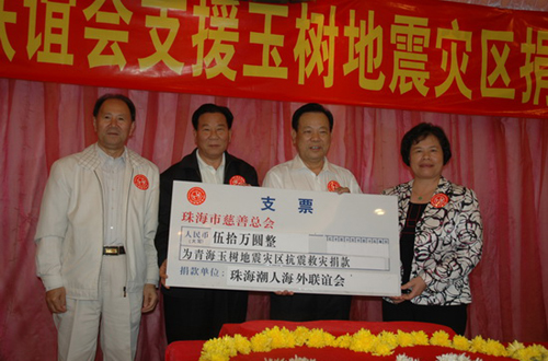 中新網(wǎng)4月30日電 據(jù)珠海僑務(wù)局消息,地震災(zāi)情牽動著億萬中國人民的心,也受到珠海海外聯(lián)誼會的潮商們的高度關(guān)注。為積極支持玉樹的災(zāi)后重建工作,繼08年汶川大地震該會捐資40萬元支持綿虒鎮(zhèn)涂禹山村重建格子巖組“僑心村”后,珠海潮人海外聯(lián)誼會又于4月27日舉辦現(xiàn)場捐款活動,呼吁珠海的廣大潮商伸出援手,募捐善款,幫助地震災(zāi)區(qū)同胞,抗震救災(zāi)、重建家園,為抗震救災(zāi)行動貢獻(xiàn)一份力量。廣東省珠海市政協(xié)副主席、市委統(tǒng)戰(zhàn)部部長羅碧堅、市僑聯(lián)主席李清出席了捐贈儀式。
