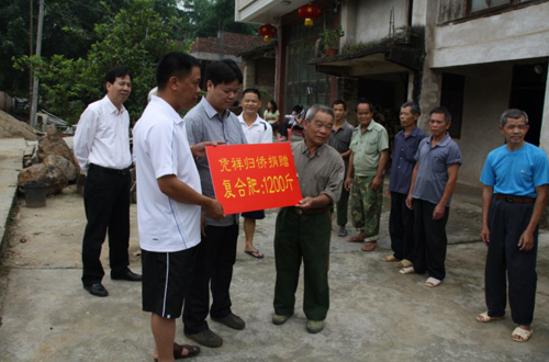 平而村地處中越邊境,有散居歸僑15戶。憑祥市今年遭遇罕見(jiàn)的特大干旱,農(nóng)民的春耕生產(chǎn)受到嚴(yán)重的影響。為了幫助散居在農(nóng)村的歸僑開(kāi)展春耕生產(chǎn),憑祥市僑聯(lián)在僑界中廣泛開(kāi)展“一幫一”、“多幫一”的“僑幫僑”支農(nóng)惠農(nóng)活動(dòng),得到僑資企業(yè)的大力支持,他們慷慨解襄,出資為農(nóng)村的歸僑購(gòu)買了農(nóng)用肥料,幫助他們解決生產(chǎn)上的困難。此次憑祥市僑聯(lián)專程到平而村為歸僑送去價(jià)值2000元肥料。(周德林)