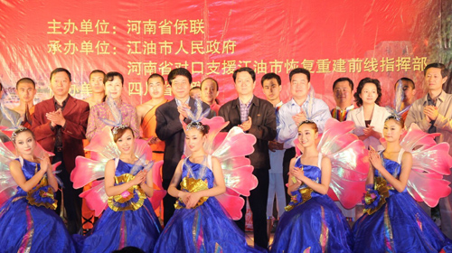 此次演出是在河南省對口援建江油的任務(wù)基本完成和由中國僑聯(lián)援建的北川中學(xué)即將竣工之際,河南省僑聯(lián)為了表達(dá)對援建、捐建四川地震災(zāi)區(qū)建設(shè)者的崇高敬意,組織近50名演員專場慰問演出。四川省僑聯(lián)從組織接待、提供用車、制定方案、聯(lián)絡(luò)協(xié)調(diào)、勘測場地、組織參觀、安全保障等給予了全方位的配合和支持。綿陽市僑聯(lián)、江油外僑辦積極參與,組織有序,使2000多名援建工作者和當(dāng)?shù)厝罕、學(xué)生觀看了演出,達(dá)到了慰問目的。(趙建中)