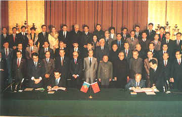 歷史性時刻――中華人民共和國與葡萄牙共和國一九八七年四月十三日在北京共同簽署關于澳門問題的聯(lián)合聲明。