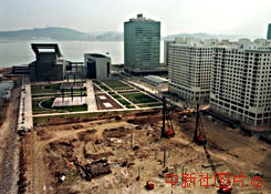 中葡雙方就澳門政權(quán)交接儀式的會場選址問題達(dá)成共識,會場將是建在澳門文化中心與東方文華店之間的臨時場館。圖為場地現(xiàn)狀。