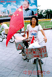 湖南省武崗二十五歲的農(nóng)民李孝富為迎接澳門回歸,騎自行車十五個(gè)月,行程約三萬(wàn)八千公里,十一月十二日抵達(dá)深圳。