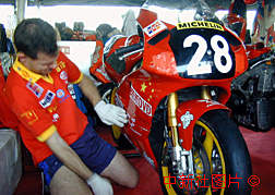 第四十六屆澳門格蘭披士大賽車即將開始,一支代表中國某集團(tuán)公司出賽的摩托車隊(duì)正在進(jìn)行車輛的賽前調(diào)試。