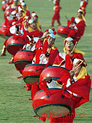 解放軍駐澳門(mén)部隊(duì)?wèi)?zhàn)士敲起威風(fēng)鑼鼓,表達(dá)迎接澳門(mén)回歸祖國(guó)的喜悅心情。