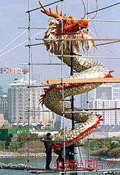 為迎接澳門(mén)回歸,澳門(mén)南灣湖內(nèi)正在加緊安裝“群龍戲水”等四組大型燈飾。